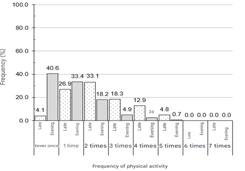 Fig. 3. - Comparison: frequency of physical activity during the afternoon and evening
