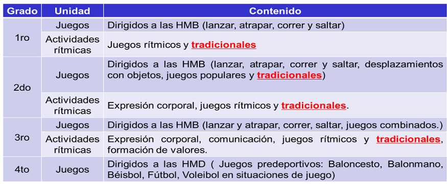 Como se puede ver se hace evidente desde el propio programa de Educación Física la necesidad de buscar alternativas que propicien la utilización de juegos tradicionales en la clase de Educación Física en las diferentes partes de la clase, todo lo cual tributará a su formación y el rescate de las tradiciones nacionales.