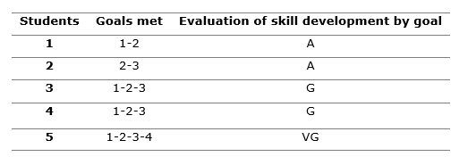 Table 1. - Results of the evaluation of research skills in the students from the scientific group by goal