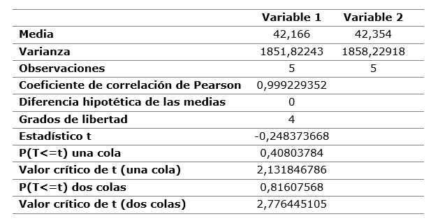 Tabla 3. - Prueba t para medias de dos muestras emparejadas