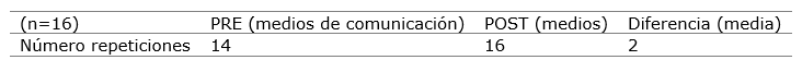 Se presenta a continuación los resultados obtenidos de las medias en la primera y segunda medición Tabla 2, así como las diferencias entre medias.
