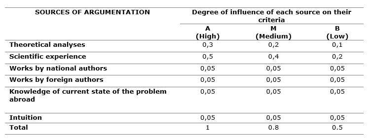 Table 2. - Standard for calculating the argumentation or foundation coefficient of the experts
