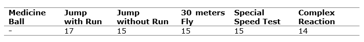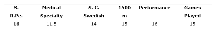 On the day of his nomination, the head coach of that team, who subscribes this note, stated, "Victoriano Sarmiento is nominated as one of the first changes to play in decisive moments of any match, in defense, reception, and serve at the Olympic Games, where our team expects to obtain a good performance." Witness of those times, the performance that Victoriano Sarmiento had in the area of physical conditions is presented. Position obtained in the variables used during the Olympic preparation.