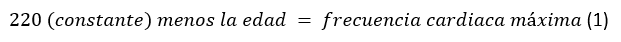 Para calcular la frecuencia cardiaca máxima que se tiene, se puede utilizar la siguiente fórmula Ecuación 1: