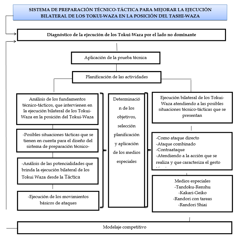 Fig. 1. - Sistema de preparación técnico-táctica para el mejoramiento de la ejecución bilateral de los Tokui-Waza en la posición del Tashi-Waza