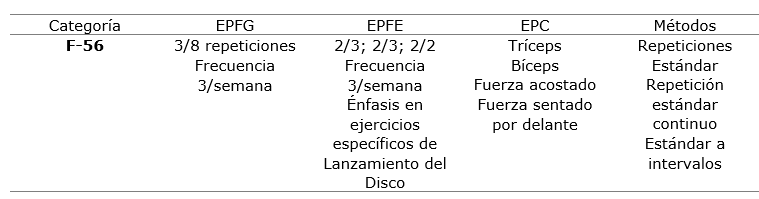 desarrollo de la fuerza rápida en paraatletas de lanzamiento del disco, categoría F-56.
